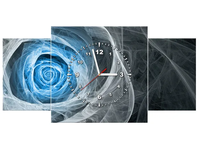 ZP4962A_3V Moderný obraz s hodinami Modrá fraktálna ruža |