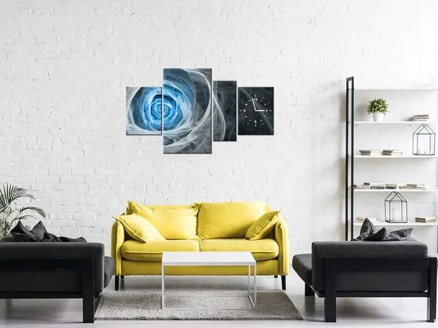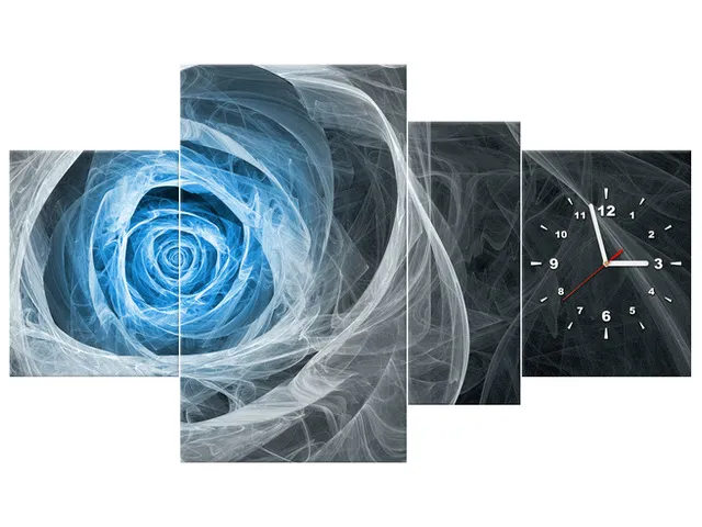 Úvod » Obrazy » Obrazy s hodinami » Moderný obraz s hodinami Modrá fraktálna ruža