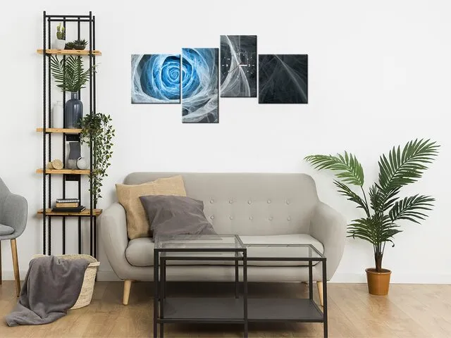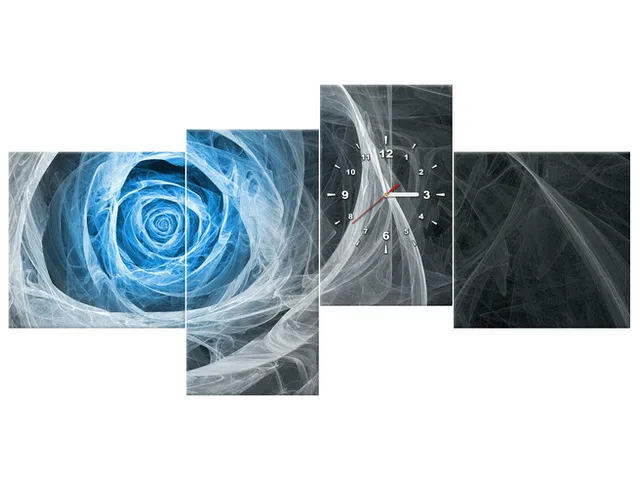 Úvod » Obrazy » Obrazy s hodinami » Moderný obraz s hodinami Modrá fraktálna ruža