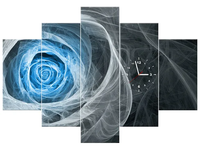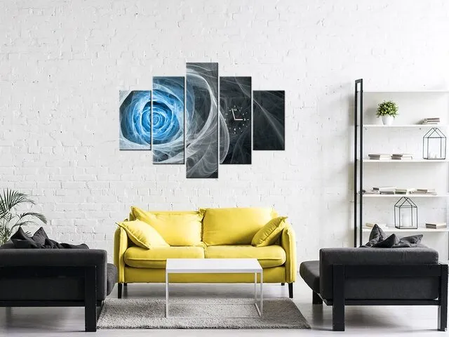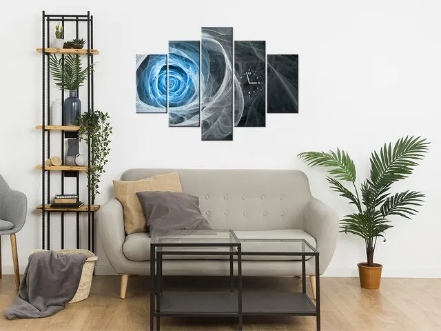 ZP4962A_3V Moderný obraz s hodinami Modrá fraktálna ruža |