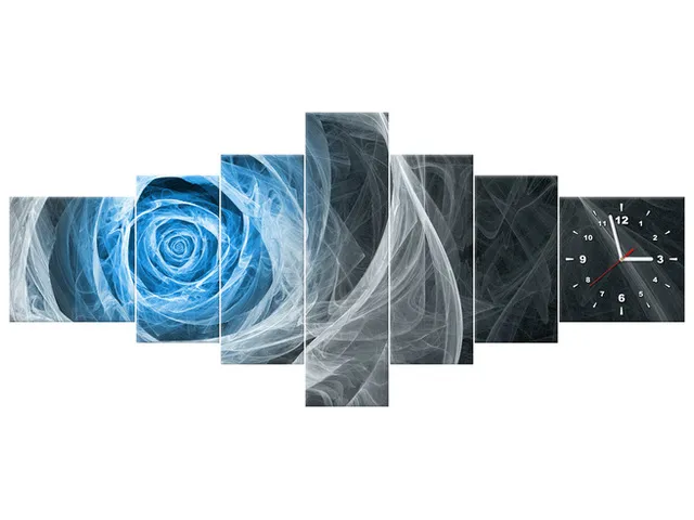 Úvod » Obrazy » Obrazy s hodinami » Moderný obraz s hodinami Modrá fraktálna ruža