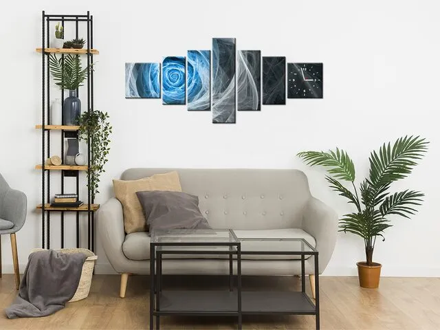 ZP4962A_4E Moderný obraz s hodinami Modrá fraktálna ruža |