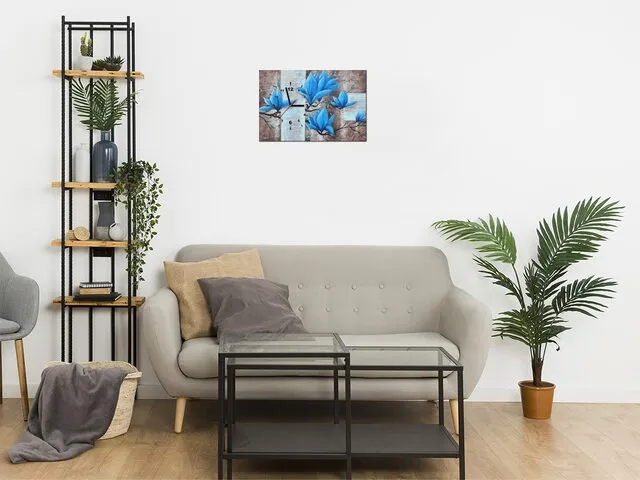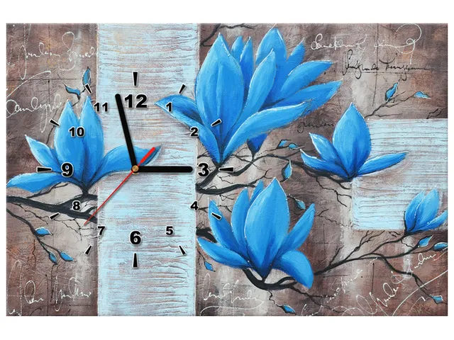 Úvod » Obrazy » Obrazy s hodinami » Moderný obraz s hodinami Modrá magnólia