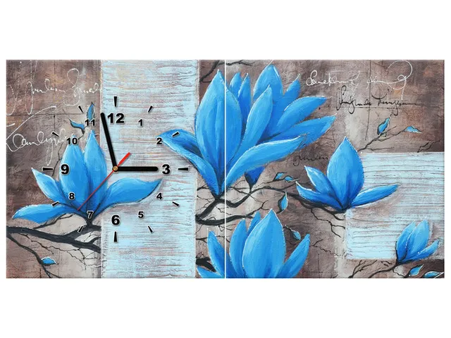 Úvod » Obrazy » Obrazy s hodinami » Moderný obraz s hodinami Modrá magnólia