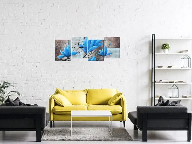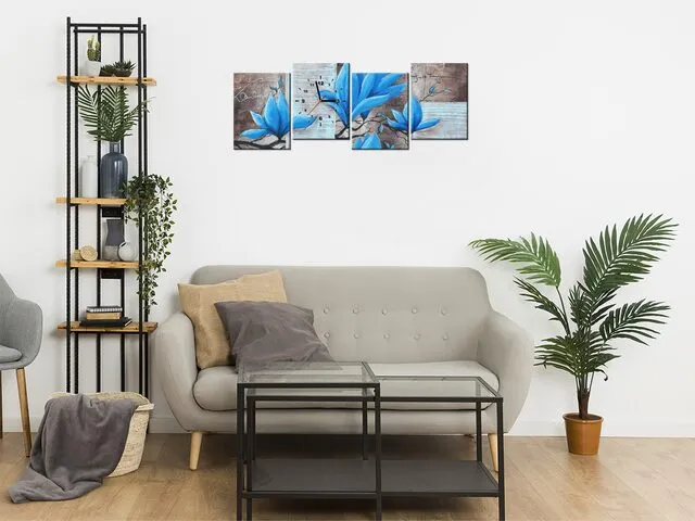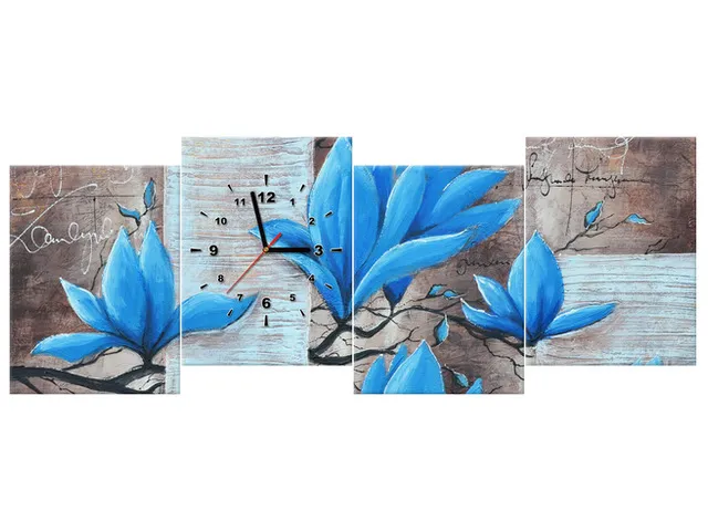 Úvod » Obrazy » Obrazy s hodinami » Moderný obraz s hodinami Modrá magnólia