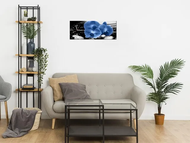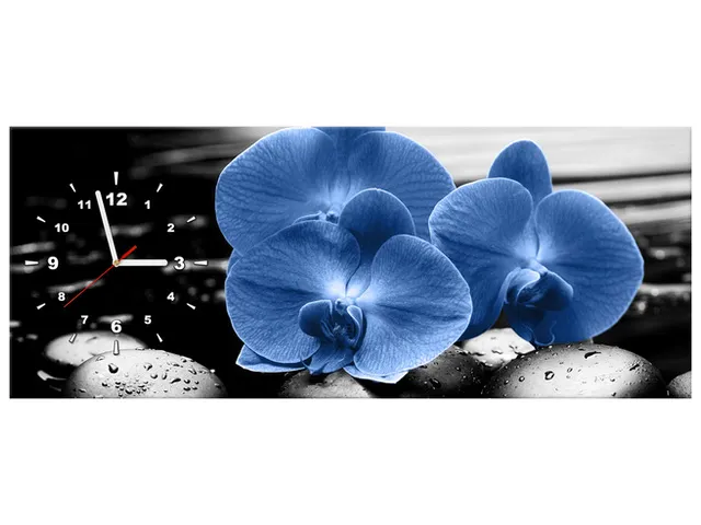 Úvod » Obrazy » Obrazy s hodinami » Moderný obraz s hodinami Modré orchidey