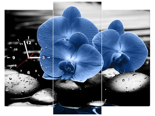 Úvod » Obrazy » Obrazy s hodinami » Moderný obraz s hodinami Modré orchidey