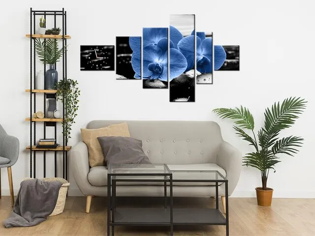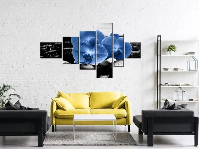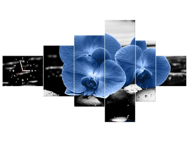 Úvod » Obrazy » Obrazy s hodinami » Moderný obraz s hodinami Modré orchidey