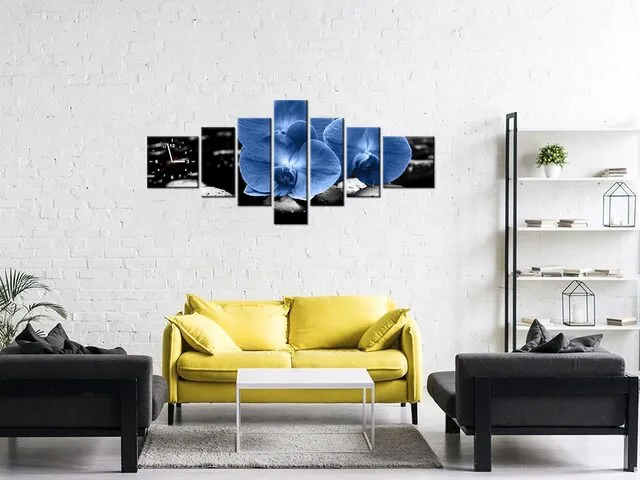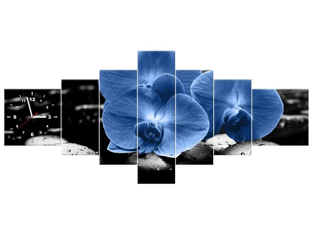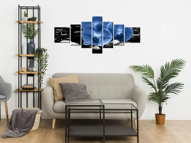 Úvod » Obrazy » Obrazy s hodinami » Moderný obraz s hodinami Modré orchidey