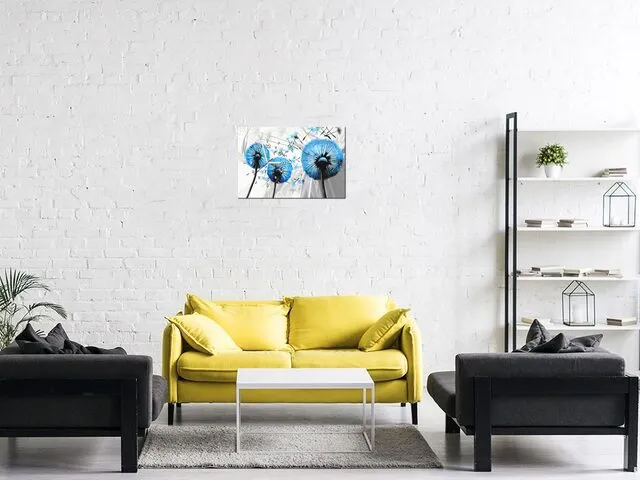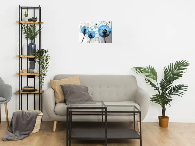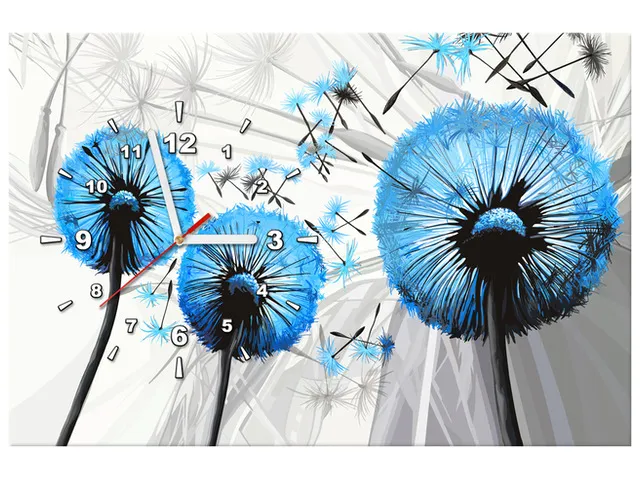 Úvod » Obrazy » Obrazy s hodinami » Moderný obraz s hodinami Modré púpavy