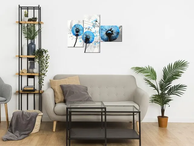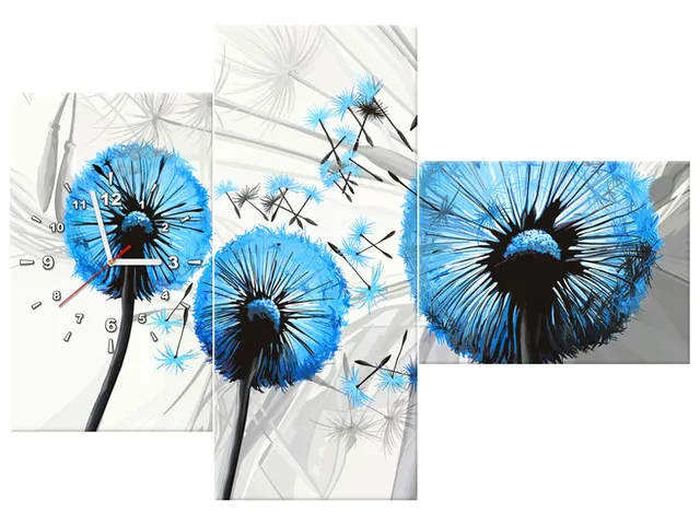 Úvod » Obrazy » Obrazy s hodinami » Moderný obraz s hodinami Modré púpavy