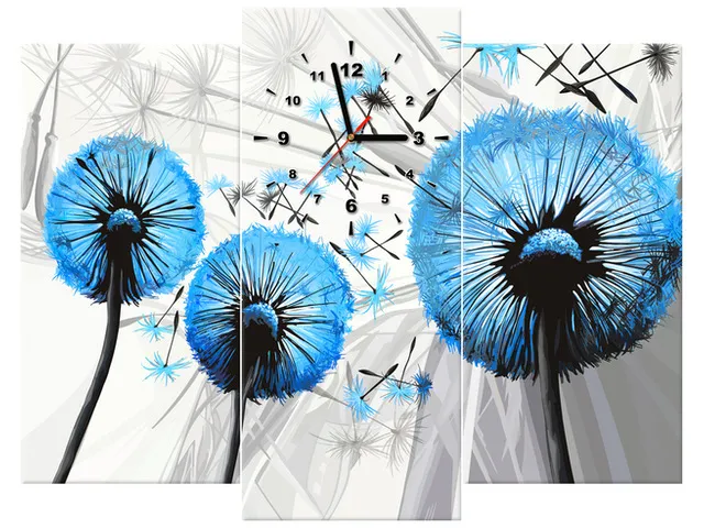 Úvod » Obrazy » Obrazy s hodinami » Moderný obraz s hodinami Modré púpavy