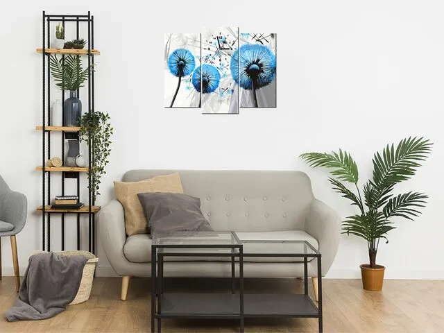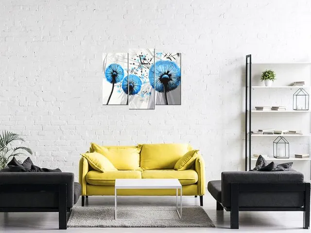 ZP4027A_3V Moderný obraz s hodinami Modré púpavy |