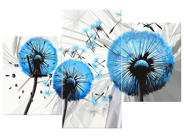 Úvod » Obrazy » Obrazy s hodinami » Moderný obraz s hodinami Modré púpavy