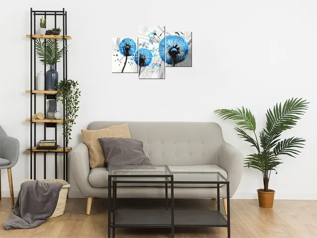ZP4027A_3V Moderný obraz s hodinami Modré púpavy |