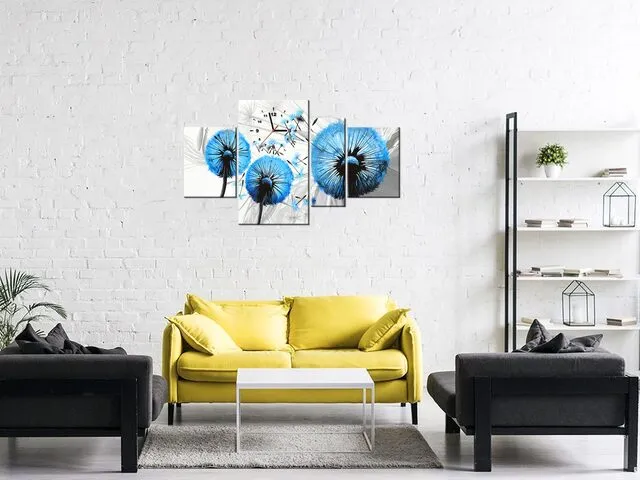 Úvod » Obrazy » Obrazy s hodinami » Moderný obraz s hodinami Modré púpavy