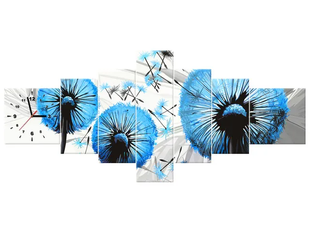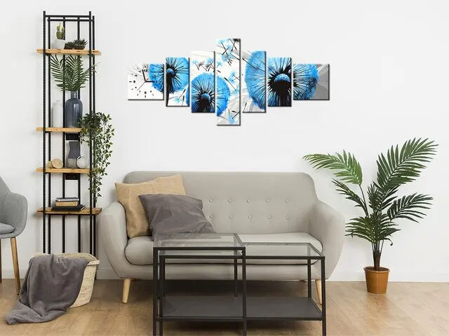 Úvod » Obrazy » Obrazy s hodinami » Moderný obraz s hodinami Modré púpavy