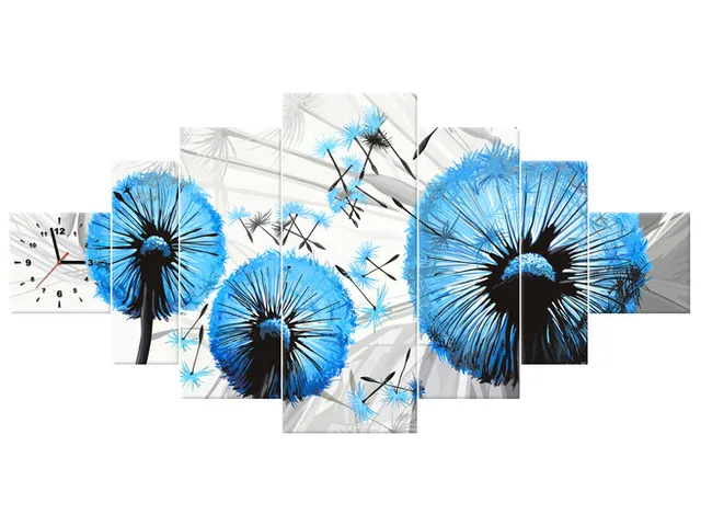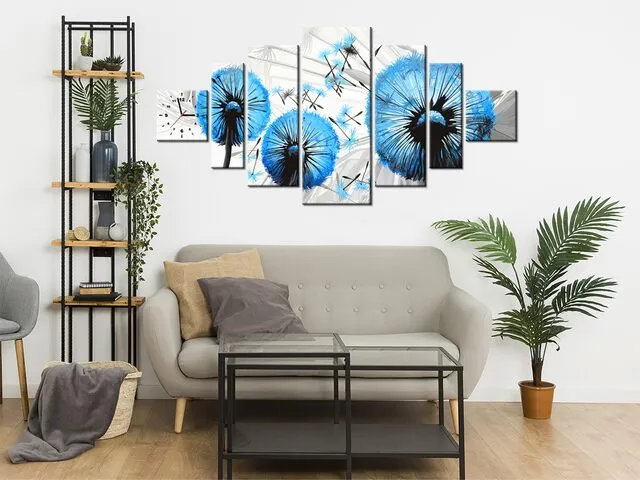 Úvod » Obrazy » Obrazy s hodinami » Moderný obraz s hodinami Modré púpavy