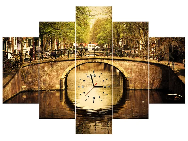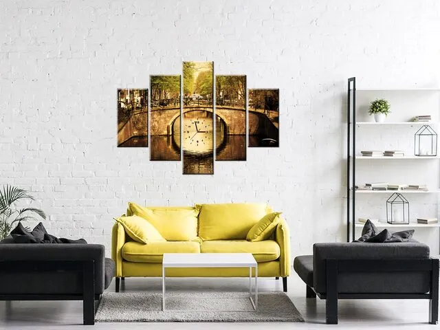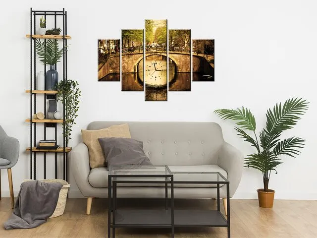 Úvod » Obrazy » Obrazy s hodinami » Moderný obraz s hodinami Most v Amsterdame