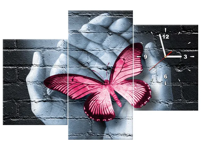 Úvod » Obrazy » Obrazy s hodinami » Moderný obraz s hodinami Motýlie graffiti
