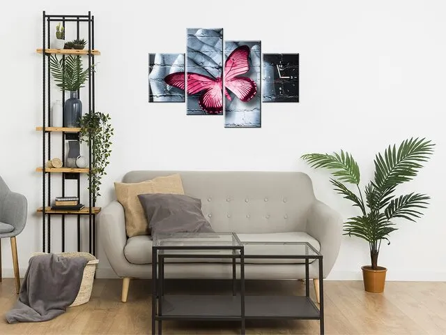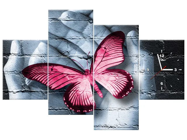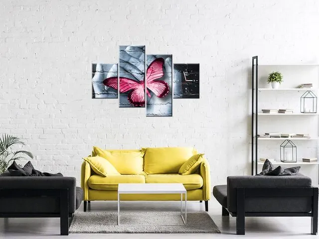 Úvod » Obrazy » Obrazy s hodinami » Moderný obraz s hodinami Motýlie graffiti
