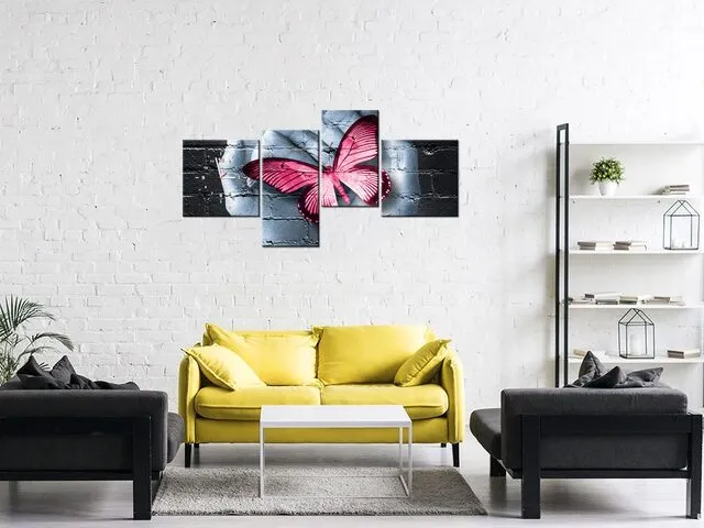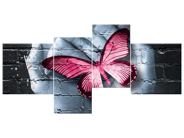 Úvod » Obrazy » Obrazy s hodinami » Moderný obraz s hodinami Motýlie graffiti