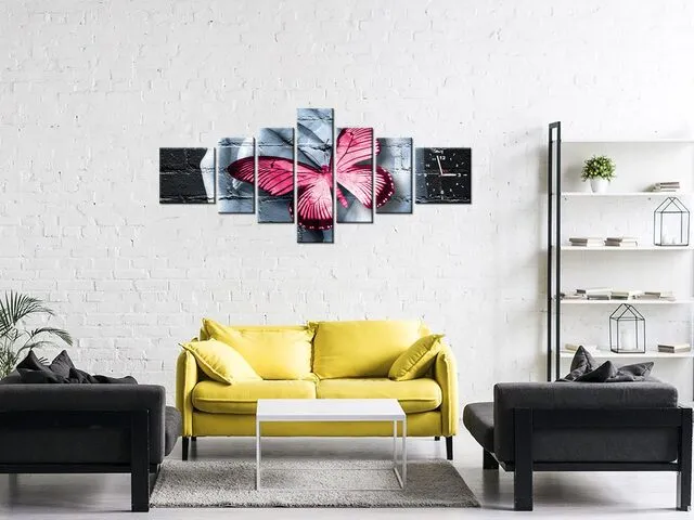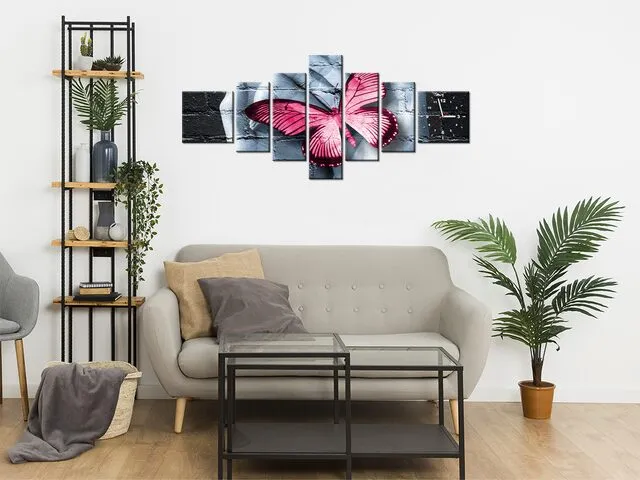 Úvod » Obrazy » Obrazy s hodinami » Moderný obraz s hodinami Motýlie graffiti