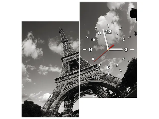 Úvod » Obrazy » Obrazy s hodinami » Moderný obraz s hodinami Paríž Eiffelova veža