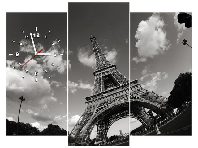 Úvod » Obrazy » Obrazy s hodinami » Moderný obraz s hodinami Paríž Eiffelova veža