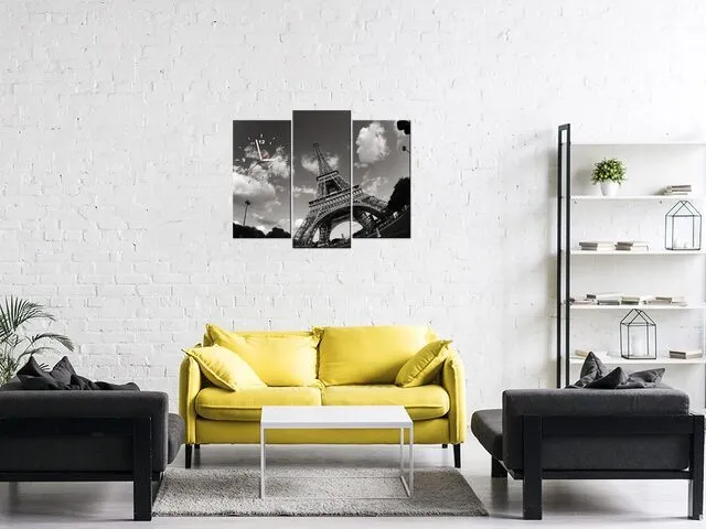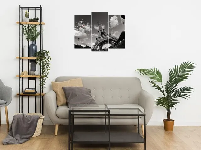 ZP545A_3V Moderný obraz s hodinami Paríž Eiffelova veža |