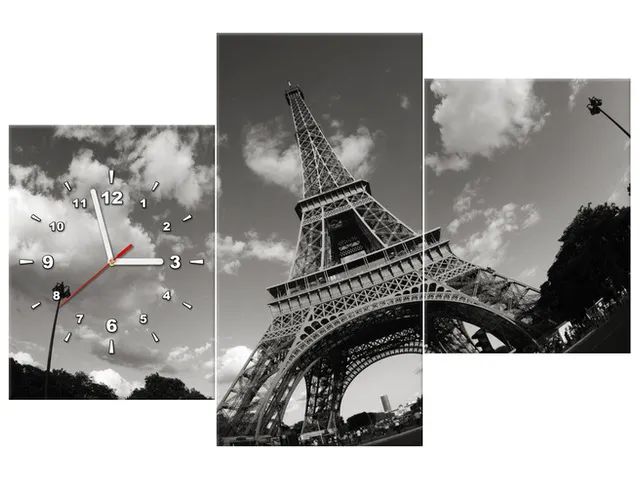 Úvod » Obrazy » Obrazy s hodinami » Moderný obraz s hodinami Paríž Eiffelova veža