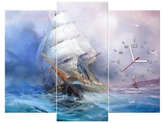 Úvod » Obrazy » Obrazy s hodinami » Moderný obraz s hodinami Plachetnica