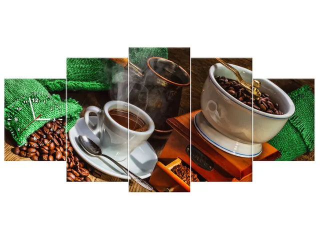 Úvod » Obrazy » Obrazy s hodinami » Moderný obraz s hodinami Prírodná káva