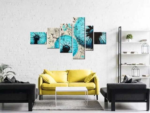 Moderný obraz s hodinami Púpavy na béžovom pozadí