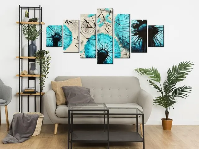 Úvod » Obrazy » Obrazy s hodinami » Moderný obraz s hodinami Púpavy na béžovom pozadí
