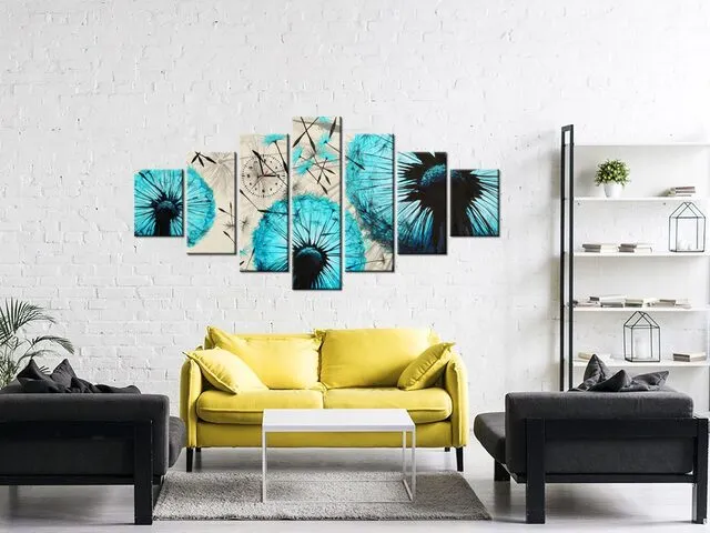 ZP4156A_5H Moderný obraz s hodinami Púpavy na béžovom pozadí |