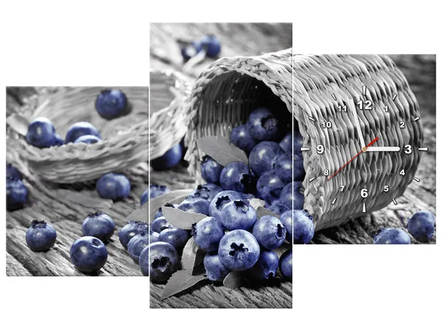Úvod » Obrazy » Obrazy s hodinami » Moderný obraz s hodinami Rozsypané čučoriedky