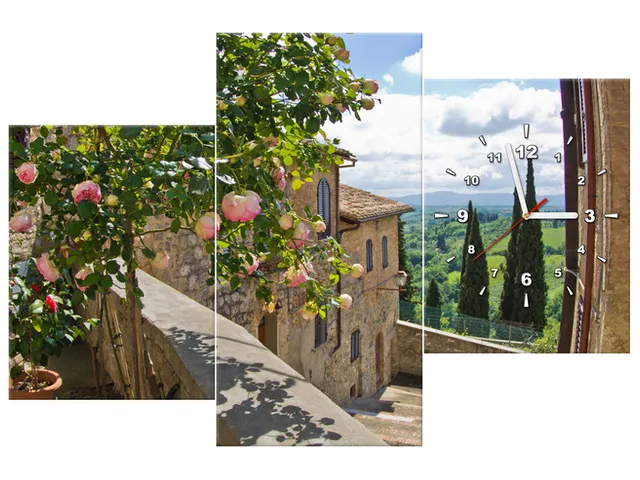 Úvod » Obrazy » Obrazy s hodinami » Moderný obraz s hodinami Ruže na balkóne