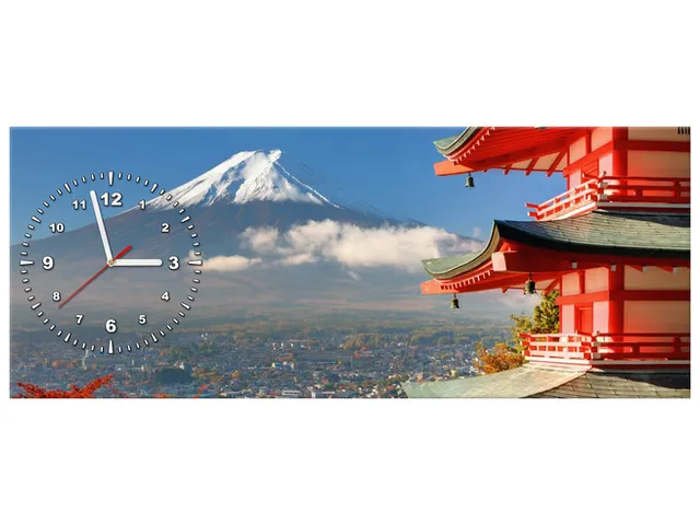 Úvod » Obrazy » Obrazy s hodinami » Moderný obraz s hodinami Sopka Fudži