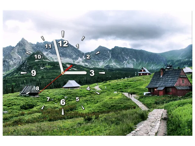 Úvod » Obrazy » Obrazy s hodinami » Moderný obraz s hodinami Tatranské chaty