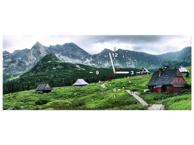 Úvod » Obrazy » Obrazy s hodinami » Moderný obraz s hodinami Tatranské chaty