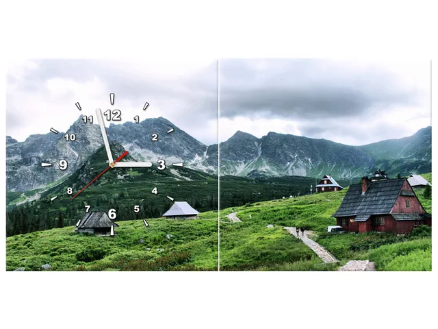 Úvod » Obrazy » Obrazy s hodinami » Moderný obraz s hodinami Tatranské chaty