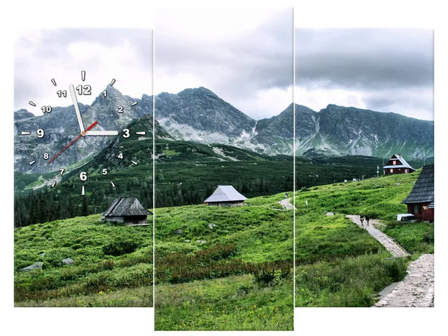Úvod » Obrazy » Obrazy s hodinami » Moderný obraz s hodinami Tatranské chaty