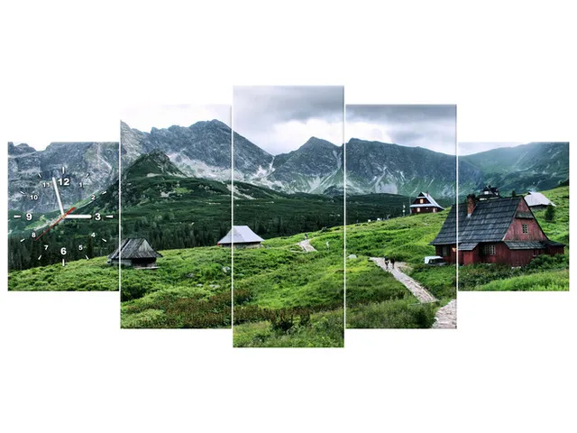 Úvod » Obrazy » Obrazy s hodinami » Moderný obraz s hodinami Tatranské chaty