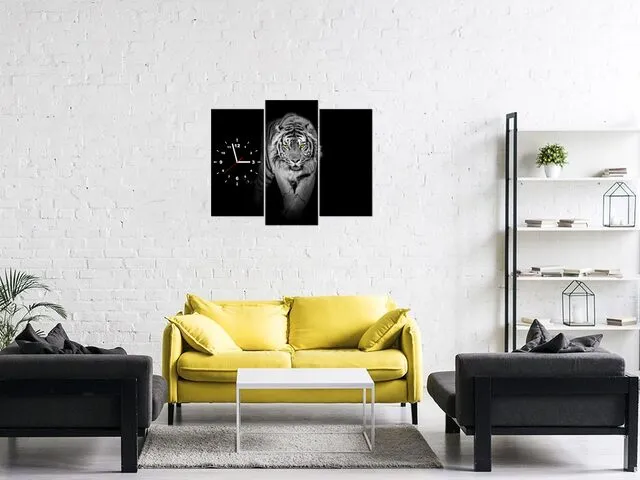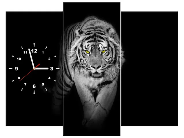 Úvod » Obrazy » Obrazy s hodinami » Moderný obraz s hodinami Tiger v tme