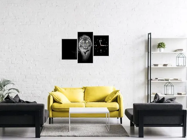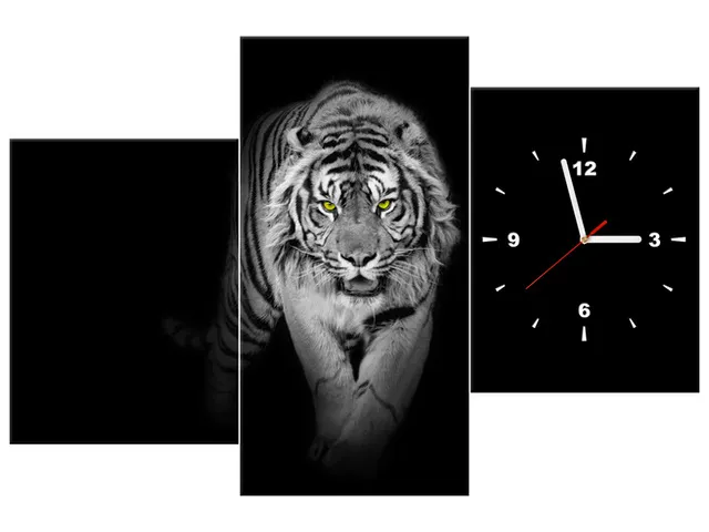 Úvod » Obrazy » Obrazy s hodinami » Moderný obraz s hodinami Tiger v tme