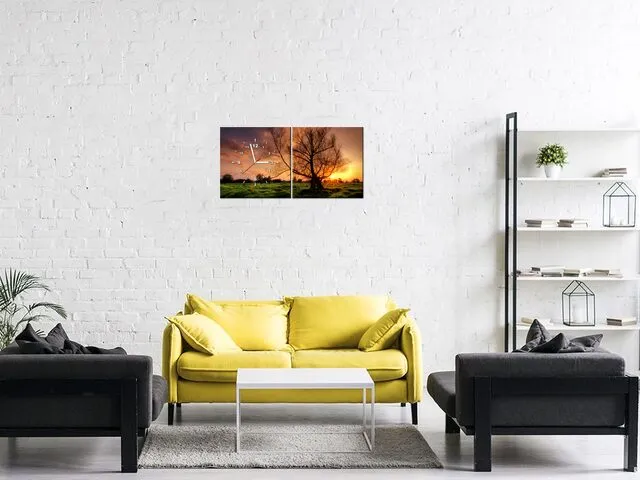 Úvod » Obrazy » Obrazy s hodinami » Moderný obraz s hodinami Večerná prechádzka