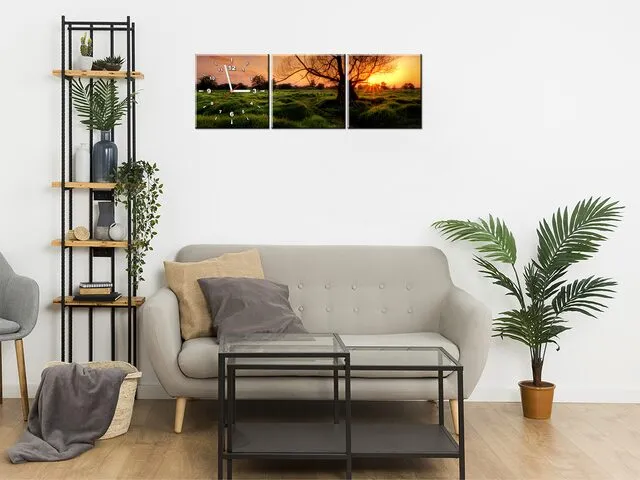 ZP90A_3AX Moderný obraz s hodinami Večerná prechádzka |