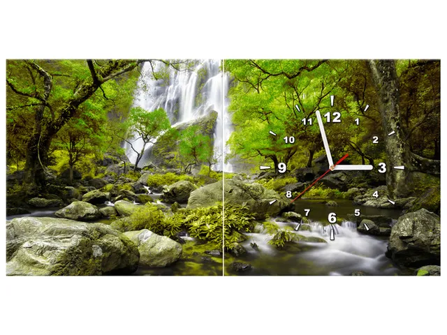Úvod » Obrazy » Obrazy s hodinami » Moderný obraz s hodinami Vodopád v zelenej