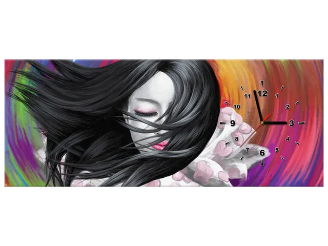 Úvod » Obrazy » Obrazy s hodinami » Moderný obraz s hodinami Žena so šatkou